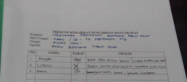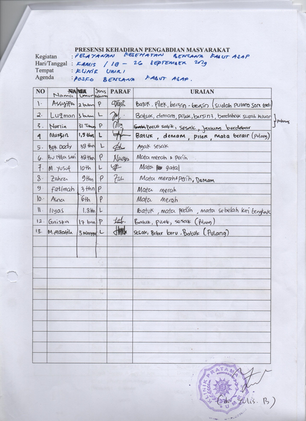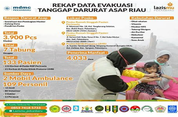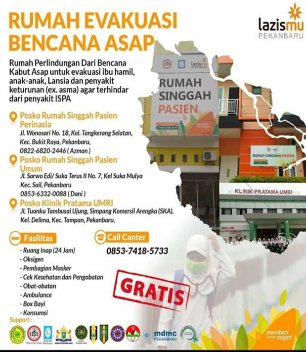 TEAM KESEHATAN RELAWAN DARURAT ASAP KERJASAMA DENGAN LAZISMU DI POSKO PENANGANAN BENCANA KABUT ASAP DI KLINIK UMRI DAN RUMAH SINGGAH LAZISMU PROVINSI RIAU, 19-27 SEPTEMBER 2019